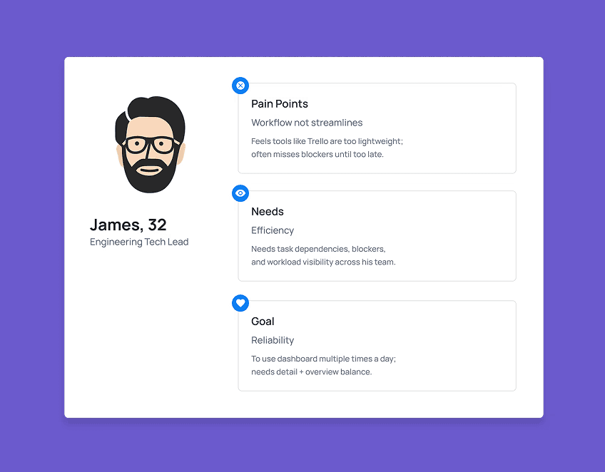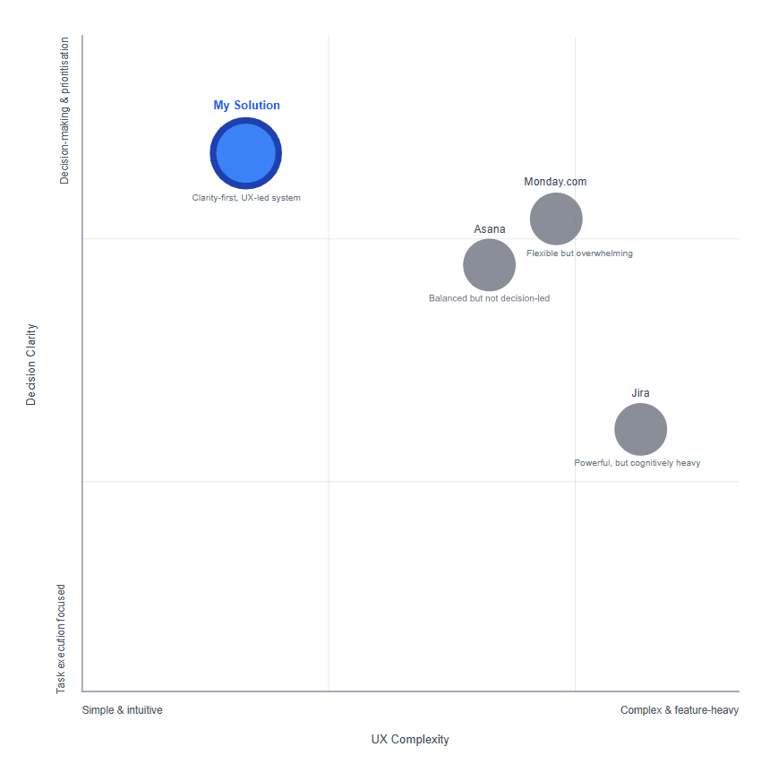 Key UX decisions -such as prioritising tasks, surfacing blockers, and reducing cognitive load -were driven by user needs and business context, not the tools themselves.