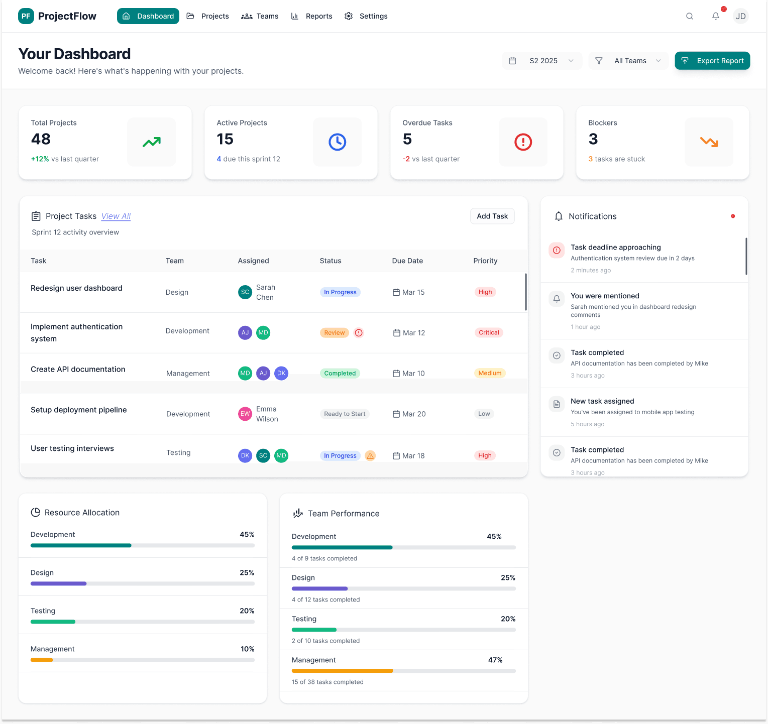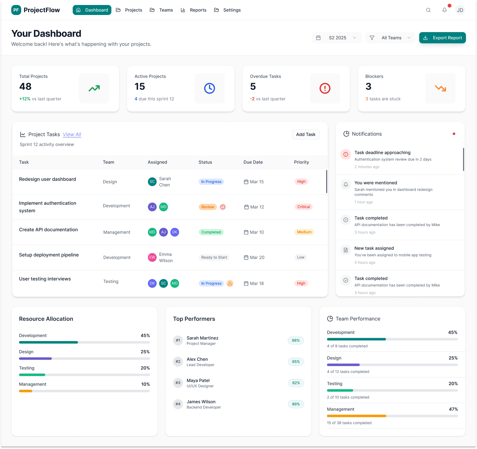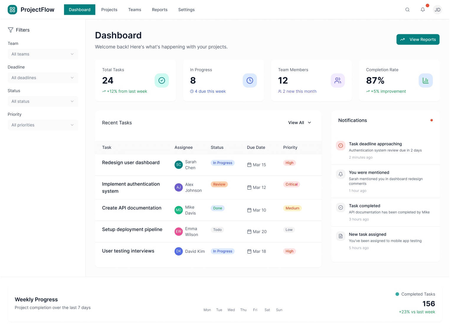 deadlines.Team Leads / Managers: Need progress visibility and