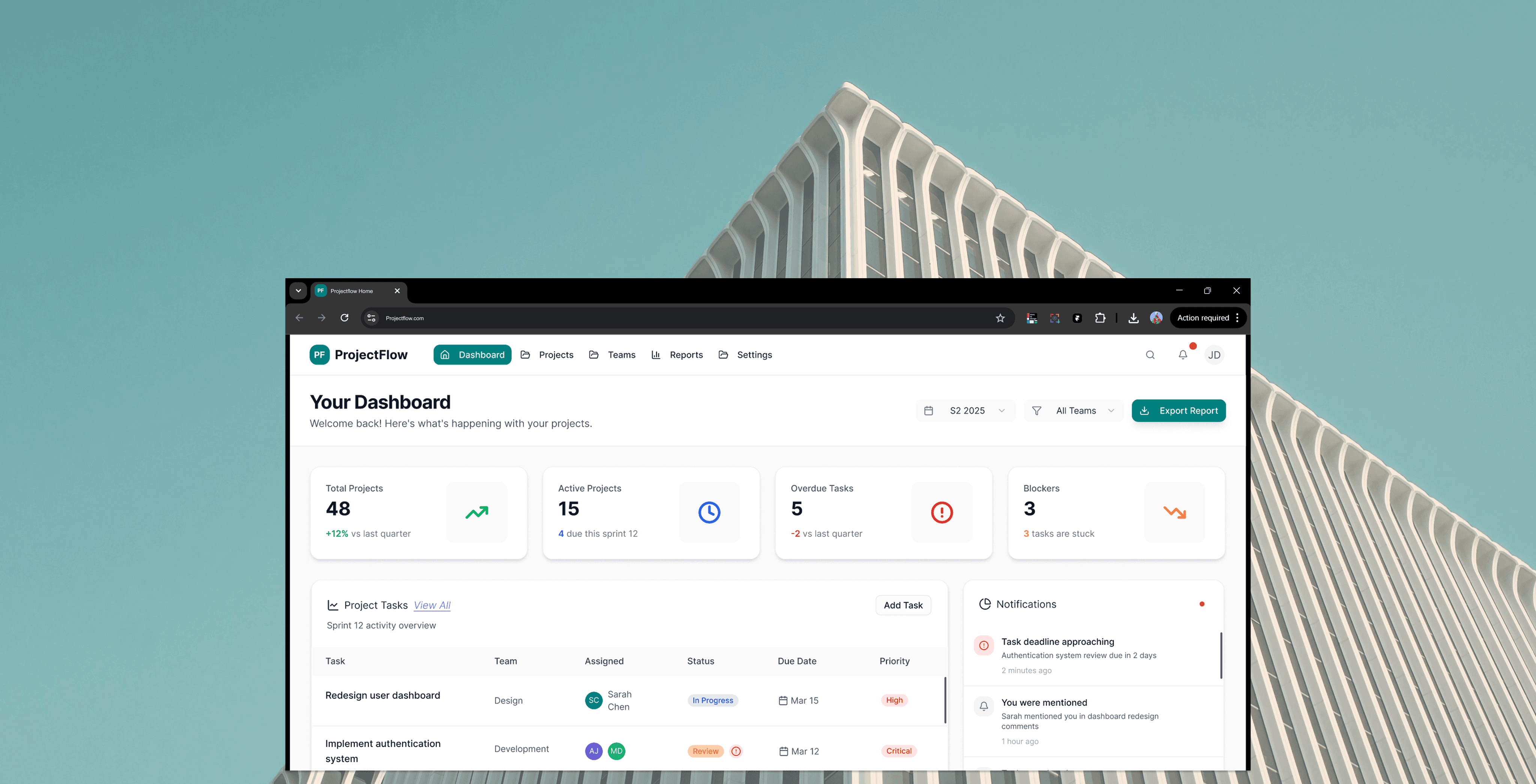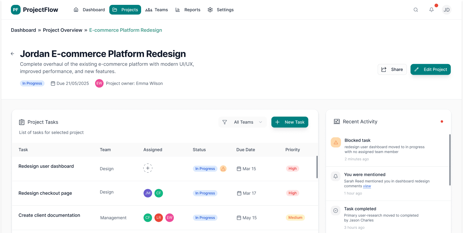 Project Flow is a project management dashboard designed to help multidisciplinary teams stay aligned, prioritise work, and make decisions using a shared source of truth.