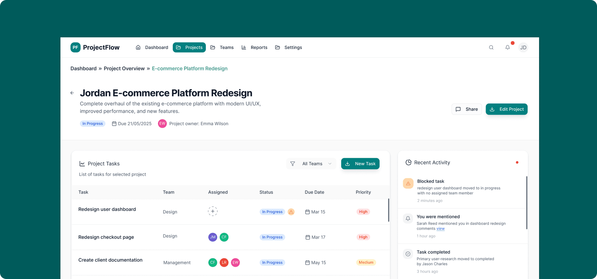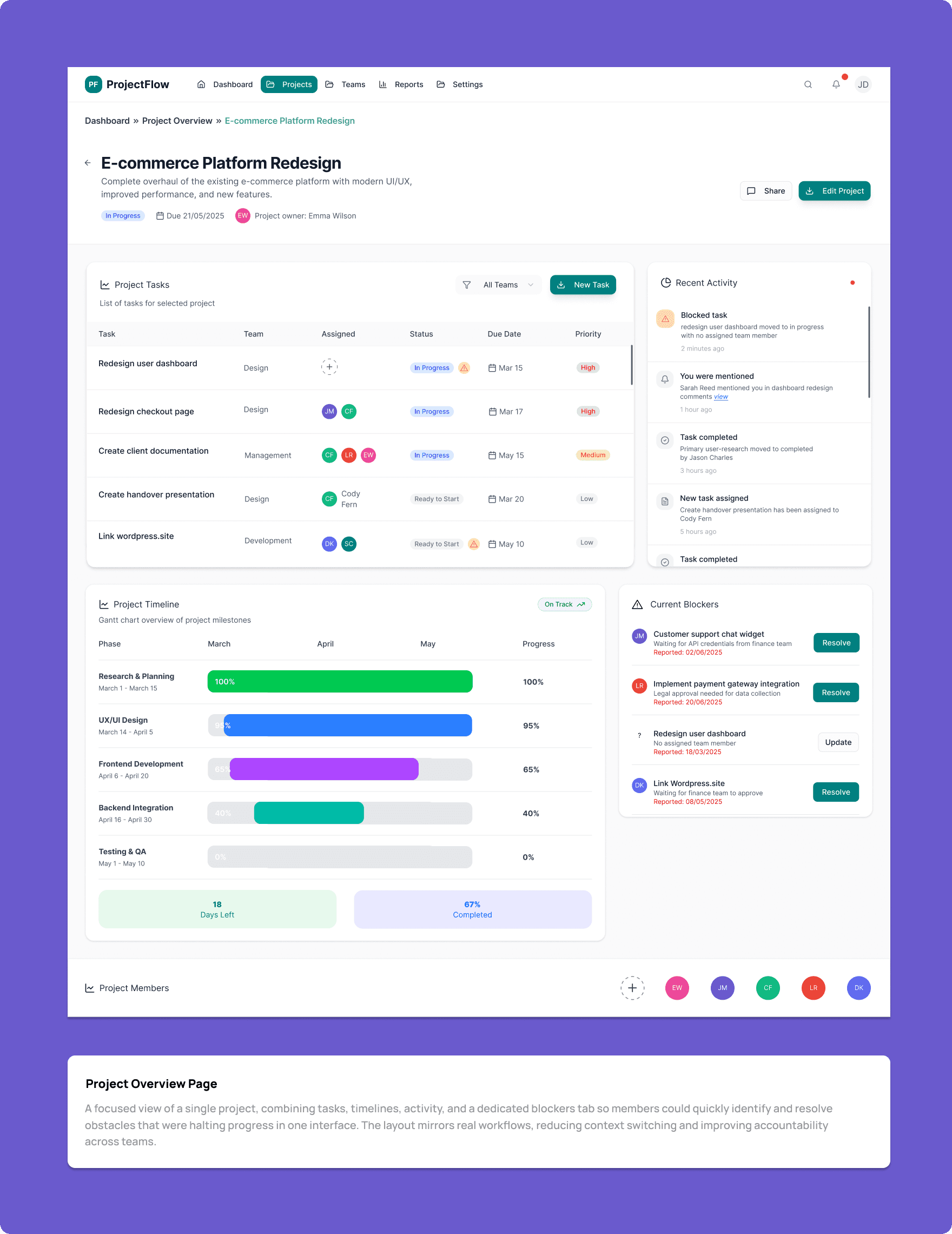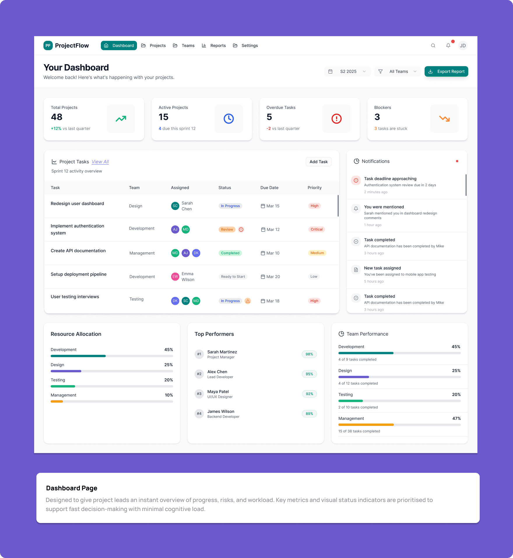 Personal project -a project management dashboard that helps teams plan, track, and deliver work more effectively without cognitive overload