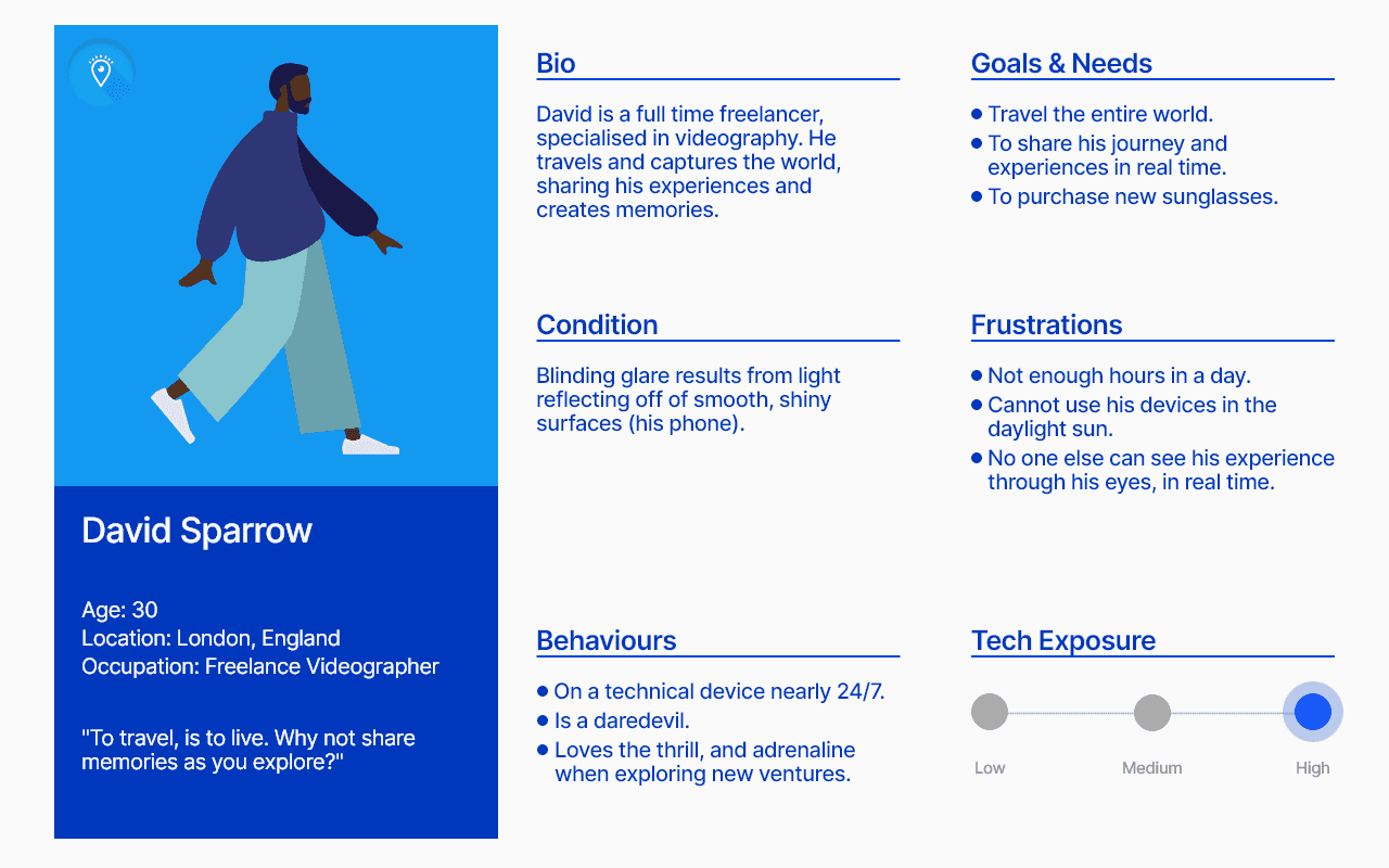 Rather than designing for a single persona, the project considered a spectrum of users who may experience visual impairment differently depending on context, environment, or fatigue.