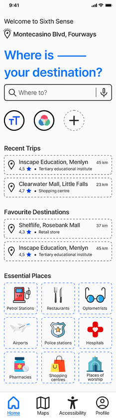 Sixth Sense is an inclusive navigation concept designed to help visually impaired users navigate unfamiliar environments safely, confidently, and independently.